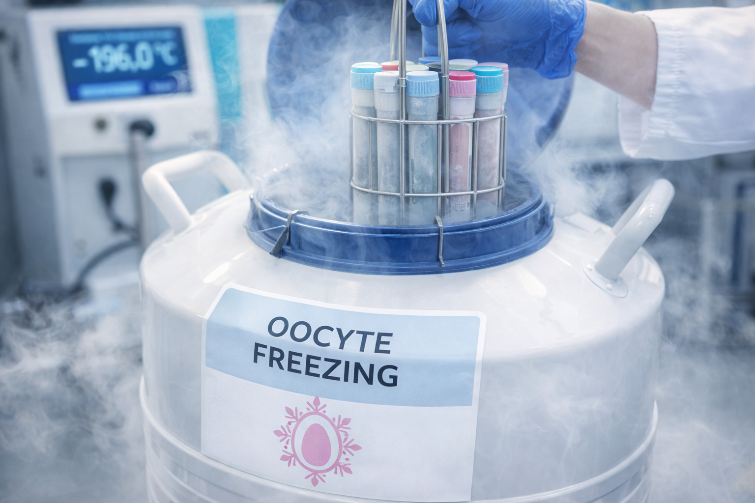 난자동결 과정은 개인의 건강 상태와 난소 기능에 따라 조금씩 달라질 수 있지만, 일반적으로 정밀검사를 통해 난소 기능과 호르몬 상태를 확인하는 단계부터 시작됩니다. 검사 결과를 토대로 개인에게 맞는 과배란 유도 계획을 세우게 되며, 평균 6~9일간 과배란 주사를 투여하며 난자를 성숙시킵니다. 생리 시작 10~14일경에 초음파 검사 유도 하에 난자를 채취하는데, 난자 채취는 수면 마취로 진행되며 통증이 거의 없고 시술 시간이 15분 내외로 소요되는 간단한 시술입니다. 채취된 난자는 난자의 성숙도를 확인한 후 유리화 동결법을 통해 안전하게 보관됩니다. 과거에는 완만 동결법(Slow Freezing)을 주로 사용했는데, 이 방법은 냉각 과정에서 얼음 결정이 형성되어 난자 손상 가능성이 높았습니다. 하지만 최근에는 유리화 동결법이 적용되어 난자 손상을 최소화하고 있습니다. 유리화 동결법은 고농도의 동결 억제제를 사용하여 세포 내 수분을 최대한 제거한 후 영하 196도의 액체 질소에 난자를 담가 초급속으로 냉동하는 방법입니다. 냉동 속도가 빠르기 때문에 얼음 결정이 형성되지 않으며 난자가 고체와 액체의 중간 상태인 '유리'처럼 굳게 되어 세포 손상이 적습니다. 액체질소 탱크에 보관하기 때문에 장기간 보관이 가능할 뿐만 아니라 해동 시에도 난자의 구조와 기능이 거의 손상 없이 유지될 수 있습니다.